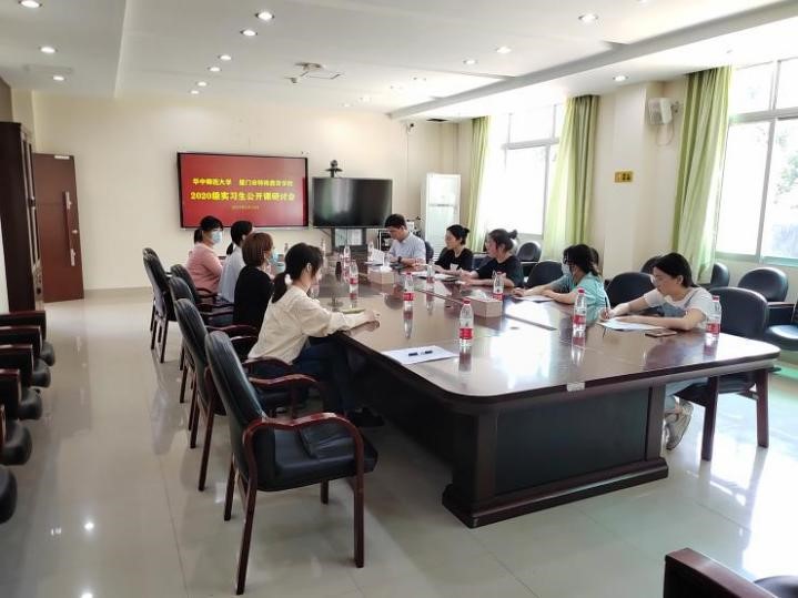 公开课后,随即举行实习总结暨公开课研讨会,厦门市特殊教育学校教导主任沈倩、实习带队教师许丽虹主持,指导教师徐添喜、沈敏等6名实习指导教师及全体实习生参会。