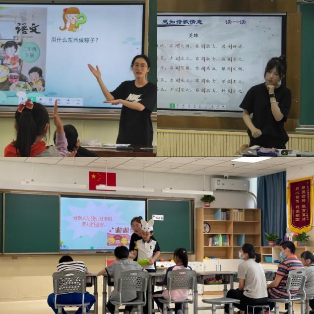 教育学院融媒体中心讯(通讯员 肖函妤 袁越明)2023年5月24日-25日,华中师范大学教育学院特殊教育专业2020级本科生厦门市特殊教育学校实习队肖函妤、吴静、孔卓婷、周芷欣、陈鑫玲、袁越明六名实习生完成公开课授课,指导教师徐添喜随队听课。