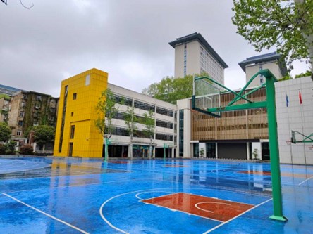 从附小的大门进入,映入眼帘的就是一个“U”字型建筑,开口朝向大门,这是附小的教学楼。“U”型教学楼的左右两边不等长,左边的北楼要长于右边的南楼,中间那一栋是西楼。而在“U”形的中间是一大片篮球场,旁边有两个羽毛球场。从门口往左望去,是一大片足球场。在这样两个大的操场上,同学们有足够的空间进行体育活动。