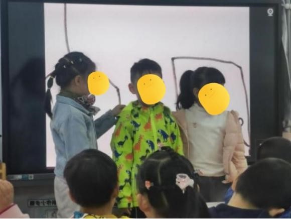 教师在幼儿分享时双目注视着分享的幼儿,同时引领其他幼儿耐心倾听,这样给予了幼儿十分的关注和尊重。当幼儿表达遇到困难时,教师也会耐心地用询问的语句进行引导,或对和幼儿一起玩的伙伴发出一同分享的邀请;也会让幼儿合作表演自己的“游戏故事”,用一体机展示自己50分钟的游戏成果。大一班的幼儿都很乐意用不同的形式上前展示“游戏故事”,气氛十分欢乐融洽。