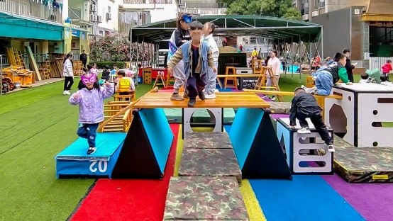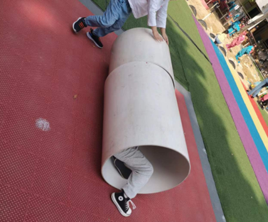 在滚筒区,我看到孩子们玩耍时往往是主动的、投入的、自由的。他们可以释放自己的天性,不受约束地玩、跑、跳、笑,还可以主动寻求其他孩子、老师的帮助和意见,这种自主探究和多元互动的环境很好地激发了孩子们的想象力、创造力和动手能力。