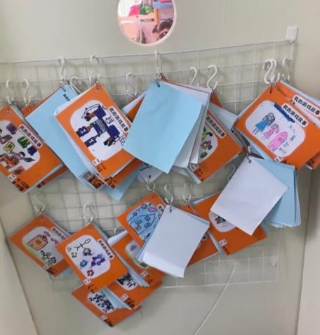 根据幼儿的喜好,投放既有鲜明特色的主材料(一个场馆一种主材料),又有多层次、适合混龄幼儿合作游戏的美术材料(辅助材料),鼓励幼儿自主参与操作。同时,还注重跨领域材料的灵活运用,如:建筑区的积塑成为拓印的工具、科学区的弹力球成为作品中的装饰。