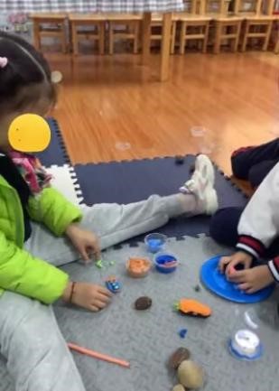 一个人玩累了,她喊上她的好朋友蕊蕊来陪她一起玩。蕊蕊听见文文喊她,于是她拿着自己的小雪人来找文文,两个好朋友互相分享了自己做的东西,不一会蕊蕊起身又去做自己的事情了,留下文文一人。可是文文既没有生气,也没有气馁,而是继续做自己的事情。接着文文又用黏土和黏土盒子做了一只小猫咪,她还细心地给小猫咪盖上了被子,能够让它在睡觉的时候不太冷。