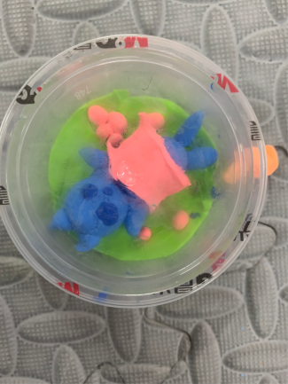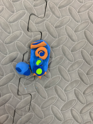 瞧,这是大一班的文文小朋友。她正在用黏土做一只小鱼,把小鱼的身体做好了之后,她还会用铅笔给小鱼点上两个小眼睛!接着她对身边的好朋友蕊蕊说:“假如今天是小鱼的生日,我们给小鱼做好吃的吧!”于是文文小朋友做了一个小桌子,给小鱼做了美味的油条、甜甜圈、小蛋糕以及星星形状的夹心饼干。