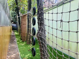 小树林区域是六渡桥幼儿园的户外自主游戏区域之一,包括攀爬网、轮胎爬梯、软木梯、绳索、单杠、秋千等游戏设施。