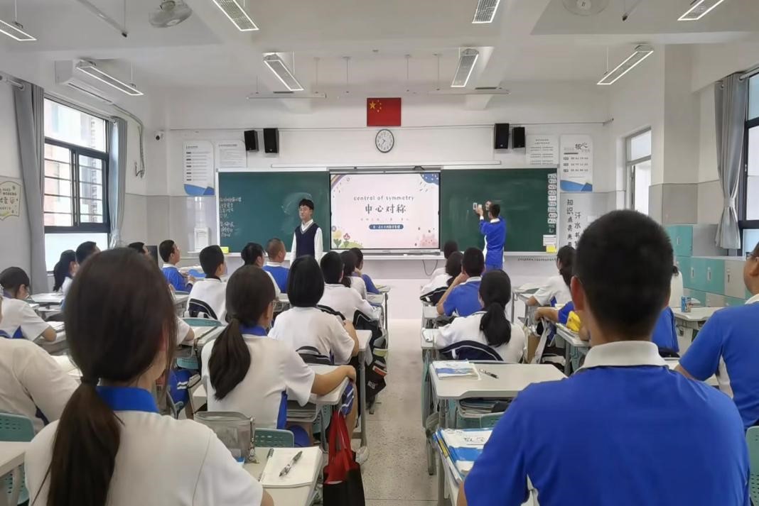 转眼间,轮到他们的“小施老师”来给孩子们上课了,这节课的名字叫“中心对称”;这是我人生中上的第n节课,但这节课不一样——站在讲台上的人是我。上课的前一天晚上,我紧张地睡不着觉,生怕自己的课让孩子们失望。但当我站在讲台上说出“上课”两字之一刹,那种紧张感顿时烟消云散。