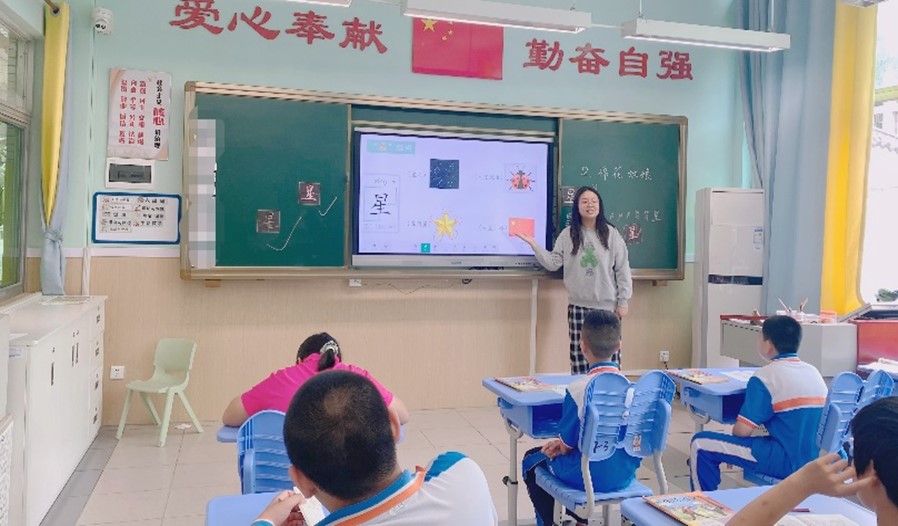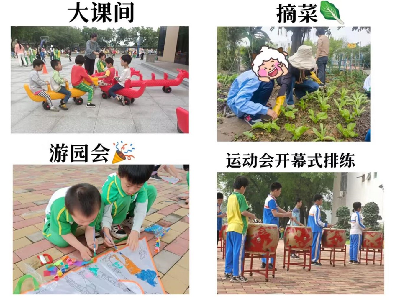 实习开始后,我主要任务在跟班,除了观察与学习班主任和包班老师如何辅导与管理学生,我也与学生一起体验了各种有趣的课堂和丰富的活动。大课间,我辅助一年2班的小朋友跳操、跳圈、划龙车;在学校菜园,我与学生、老师们一起摘菜;游园会,我带学生一起体验有趣的游戏……亲身体验后,我深刻认识到良好的学校环境、丰富的教学资源,不仅让学生的校园生活更有趣,也给教师提供更大的创作空间。