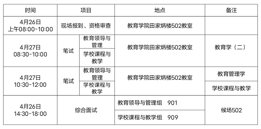 2. 初审结果公布:2024年04月19日前将符合初审条件且入围综合考核的考生名单在教育学院官网进行公布。