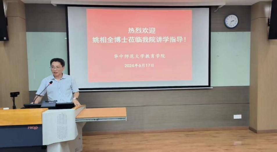 教育学院融媒体中心讯(通讯员 李婉澜 周小宇)2024年6月17日,“数学教育研究中的理论意识”学术报告会在我院905教室顺利举办。本次学术报告会由我院罗祖兵教授主持,由宾夕法尼亚州立大学副教授姚相全博士主讲,参会人员主要有教育学院罗枭等老师,教育学院研究生、本科生以及数统学院的部分学生。