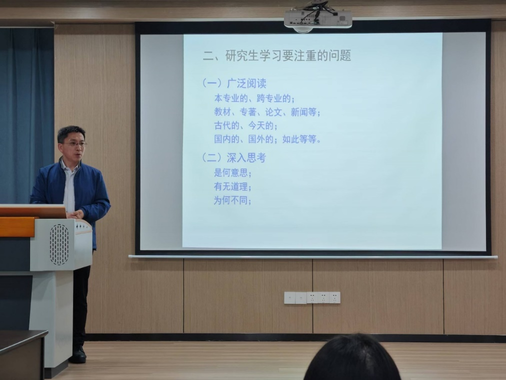 罗祖兵指出,研究生学习要注意四方面的问题。一是要广泛阅读。阅读,不仅要读本专业的,还要读跨专业的,如社会学、哲学、心理学的;不仅要读国内的,还要读国外的;不仅要读古代的,还要读现当代的。二是要深入思考。阅读的时候,要思考是何意思、有无道理、有何不同,关注隐藏在文字背后的立场。三是要联系实际,联系科学发展实际、联系社会发展需要实际、联系人的全面发展需要实际。四是要全面把握,包括把握学术、把握学者、把握学派等。