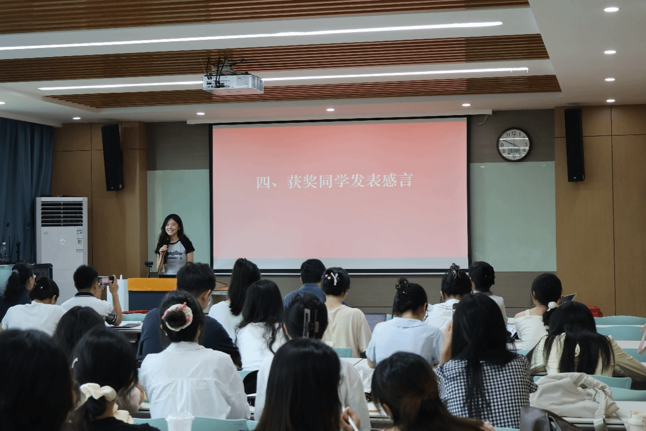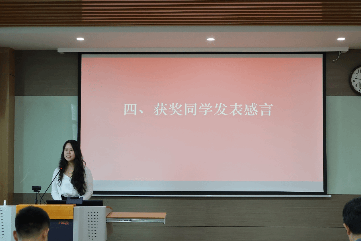 颁奖仪式后,三位获奖研究生代表李婉润、黄芷杉、周心如依次分享感言。同学们表示,获奖与自身的努力锻炼分不开,亦与学院提供的实习、实践机会分息息相关,更与相关老师的精心指导有关。