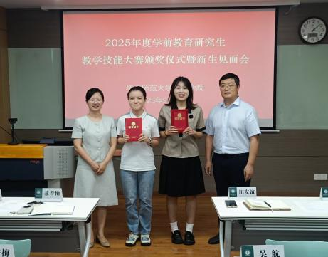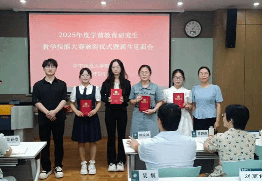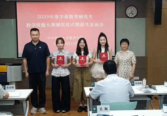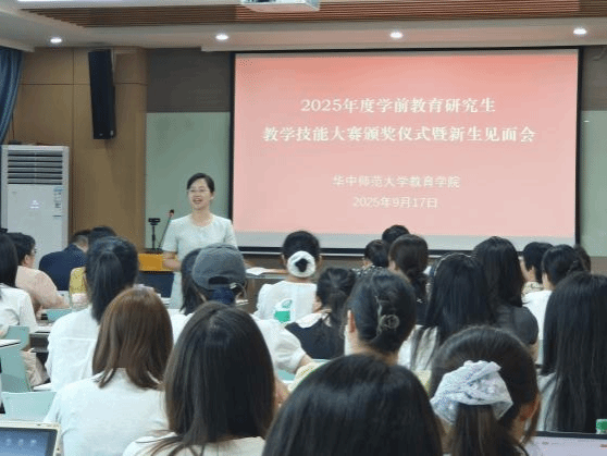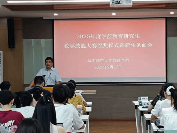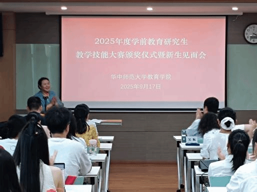 教育学院融媒体中心讯(通讯员 于凌苏 张豪鹏)为表彰先进、凝聚新生力量,9月17日,教育学院学前教育系于田家炳教育书院905会议室开展2025年学前教育系研究生教学技能大赛颁奖暨新生见面会。教育学院党委副书记苏春艳、副院长田友谊、学前教育系全体教师、23级学前教育专业学位硕士生、24级学前教育专业学位硕士生以及25级学前教育全体新生参与此次会议。会议由王雯主持。