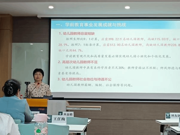 活动开场,王雯老师介绍了研究生教学技能比赛的整体情况。在2025年度的教学技能比赛中,学前教育系师生踊跃报名参加,有17名研究生参加比赛,经过公平公正的初赛和复赛,有9名研究生获得奖项,其中两名同学获得参加全国大赛现场决赛的资格。
