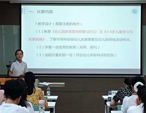 即将代表我院学前系研究生参加国赛的李梦欣、底舒瑕两位同学进行了经验分享。她们结合自身参赛经历,从赛事准备的系统性、心态调整的科学性、技能提升的针对性等方面,为新生们提供了详实且具有操作性的建议,为新生未来的学习与参赛提供了有效的参考。