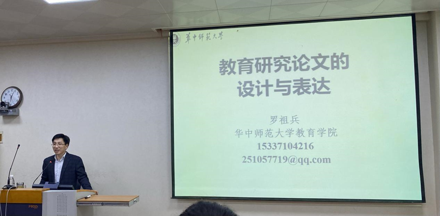 罗祖兵教授主要从“教育研究论文的祛魅”、“写教育研究论文的基础”以及“如何确定论文选题”三个方面重点阐述了学术论文的写作问题。罗教授首先讲到,教育研究就是持续、深入地探索教育教学问题,而教育研究论文是教育研究成果的表达。写论文就是将教育研究成果、自己想法清楚而有条理地表达出来。写教育研究论文不同于写作文,不要求辞藻华丽;它是自己想法的表达,只要说清楚、有道理即可。