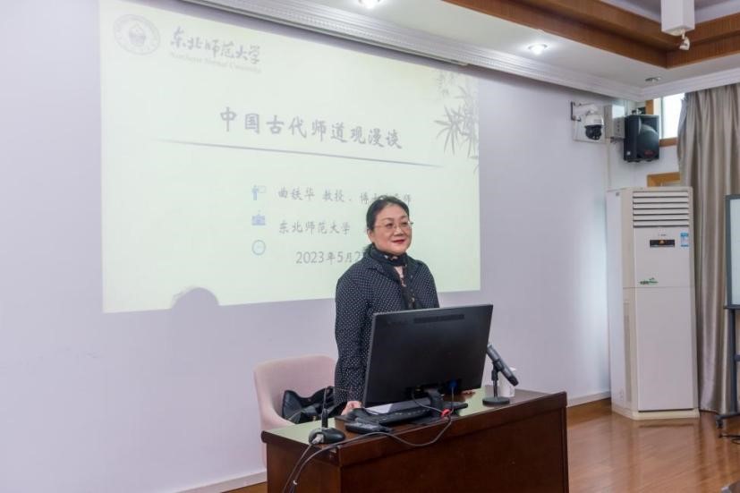 教育学院融媒体中心讯(通讯员 白静倩)2023年5月21日下午,由华中师范大学教育学院主办的第四十八期“博导论坛”在田家炳教学楼624教室成功举办。东北师范大学教育学部二级教授、博士生导师、中国教育学会教育史分会副理事长曲铁华教授应邀以“中国古代师道观漫谈”为题作了一场学术报告。此次论坛由教育学院二级教授、博士生导师、国家教育治理研究院执行院长申国昌教授主持。刘来兵教授、邹红军副教授、白颖颖老师及教育学院研究生参加。