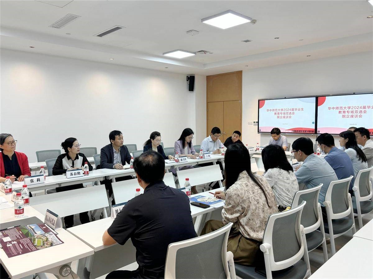教育学院党委书记陈雪玲,副书记苏春艳、王璐,副院长雷江华、田友谊,毕业年级班主任张莉、王任梅、伍远岳、孙银光、宫慧娜,10余家用人单位代表在新大学生活动中心202会议室开展座谈交流。陈雪玲书记对参会单位表示热烈欢迎和衷心感谢,她指出加强院企、院校交流,推进供需对接,是解决学生实习、就业和企业用人双向需求的现实需要,希望以本次座谈会为起点,探索院企、院校合作育人新路径,凝聚就业工作合力,实现就业育人的多方协同,促进毕业生更加充分更高质量就业。