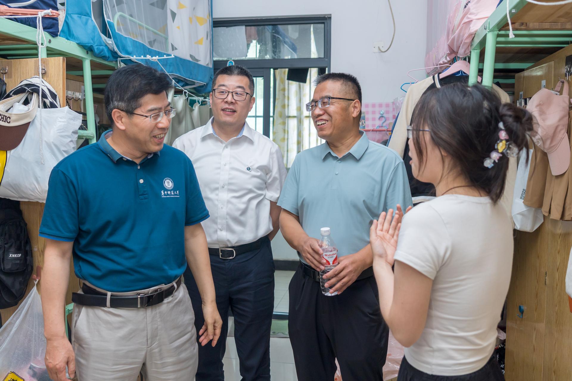 教育学院融媒体中心讯(通讯员 王子琳 张萌)6月7日,华中师范大学校长彭双阶赴国交四栋学生宿舍,走访我院毕业生寝室,与毕业生交流毕业去向,聆听毕业生心声。党委学生工作部思政处处长李刁、副处长李宪玲,教育学院党委副书记苏春艳、副院长郑刚、工会主席王建梁,教育学院研究生导师代表钱佳、王任梅、姚林群,辅导员张萌、陈梦雨、张叶晔等一同走访。