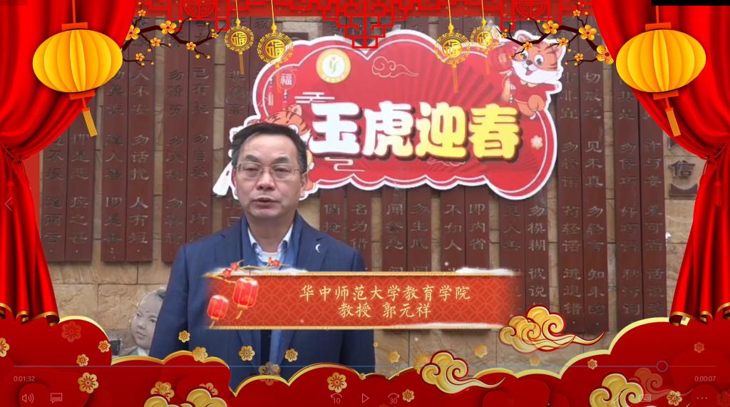 晚会伊始,华中师范大学教育学院党委书记李玲、院长雷万鹏、党委副书记张扬、黄玉新、副院长雷江华、田友谊以及教师代表郭元祥教授为华教学堂师生送上了新年祝福,愿教中开新局,学中谱新篇。