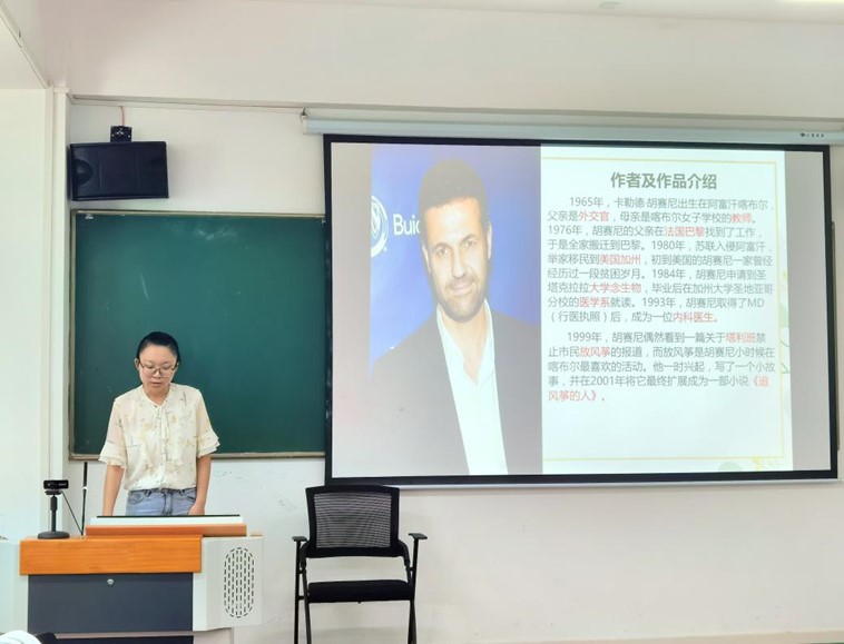 王菁同学结合卡勒德·胡赛尼的《灿烂千阳》作分享,对该书的创作背景及主要内容进行了介绍。该小说以20世纪70年代的阿富汗战乱为背景,讲述了两个阿富汗妇女相依相扶抵抗苦难生活、不断追求希望与梦想的感人故事。书中的主角玛丽雅姆是一个命运多舛又坚韧顽强的女性,作为私生女自小被亲生父亲遗弃,少女时期被迫嫁给老鳏夫拉希德,长期遭受家暴折磨。在命运的捉弄下,玛丽雅姆无奈与邻居家因战争成为孤女的莱拉成为家人、共侍一夫。两个悲苦的女人在长期相处中由敌对到结盟,彼此依靠慰藉,共同抵御生活的艰辛和丈夫的残暴。在莱拉的青梅竹马塔里克出现、莱拉将被拉希德置于死地之际,为保护莱拉,玛雅姆丽毅然一锹结束了拉希德的生命,以自己的死刑换取了莱拉的新生。战争结束后,莱拉怀着与玛利雅姆的亡灵在一起的心愿,带着孩子回到喀布尔,开启了新的生活。