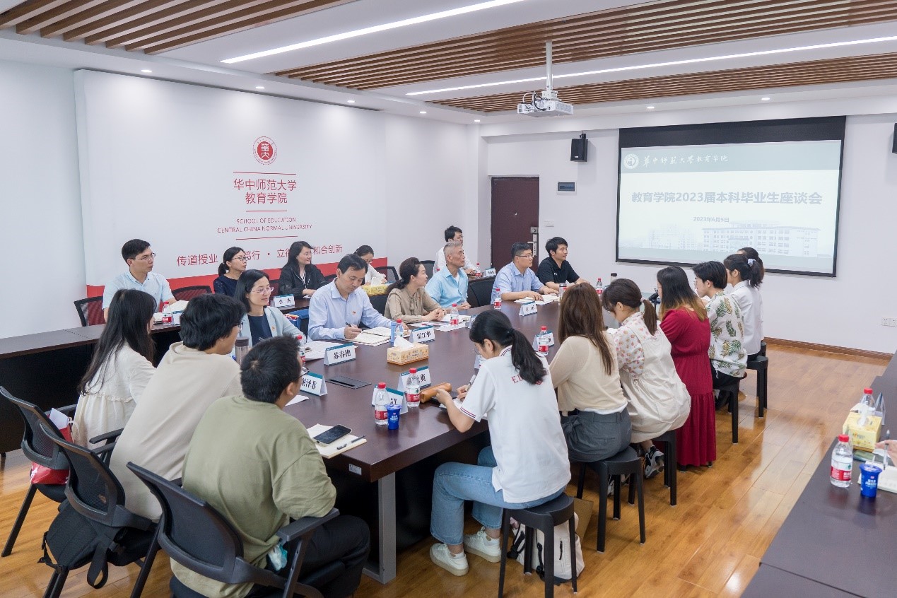 教育学院融媒体中心讯(通讯员 周嘉腾) 为学习贯彻习近平新时代中国特色社会主义思想主题教育,牢牢把握“学思想 强党性 重实践 建新功”总要求,落实“我为师生办实事”,6月5日中午,学院在田家炳教育大楼909室举行组织召开2023届本科毕业生座谈会。教育学院党委书记陈雪玲、副书记苏春艳、副院长雷江华、田友谊、退休教师方彤、党支部书记钱佳以及2023届本科毕业班级的班主任老师、14名本科生代表参与座谈。活动由毕业生辅导员王诗薇主持。