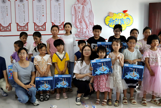 襄州区团委代表为孩子们送上科学实验教具套装