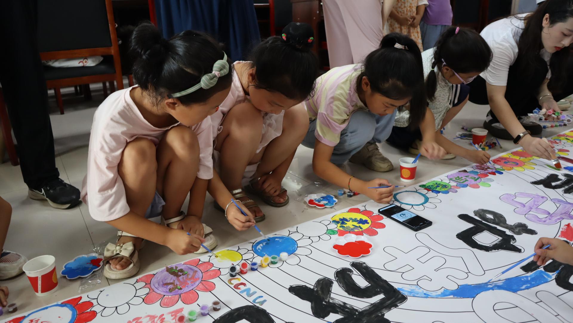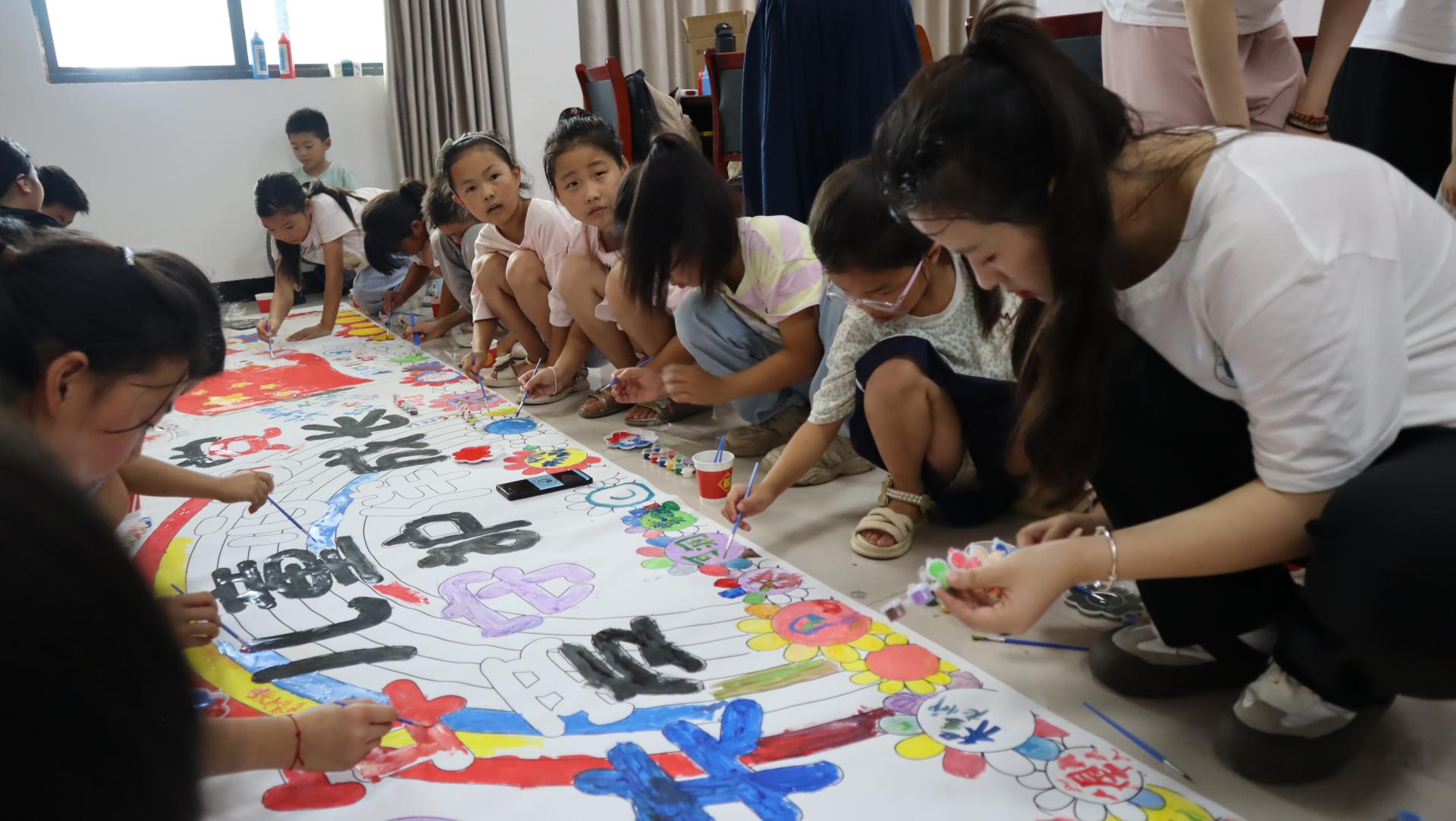 志愿者们与孩子们共绘长卷