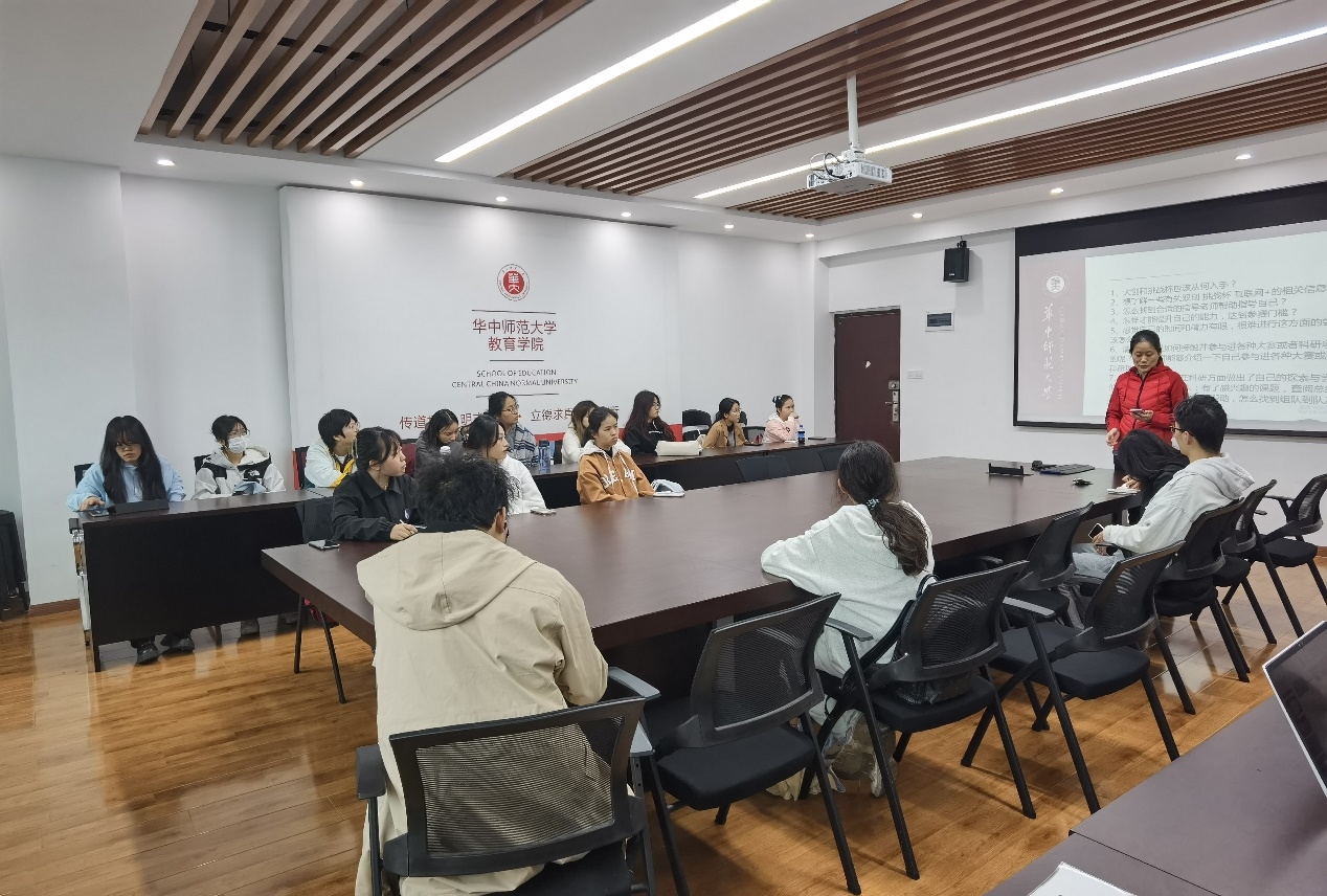 教育学院融媒体中心讯(通讯员 吴仪 王利娜)为加强师生沟通,引导学生做好科研发展规划,11月10日,教育学院2205班在华中师范大学田家炳教育书院909室开展“勤耕致远,科研启航”主题教育班会,2205班班主任吴航老师、2022级本科生辅导员王利娜和2205班全体同学参会,团支书吴仪主持活动。