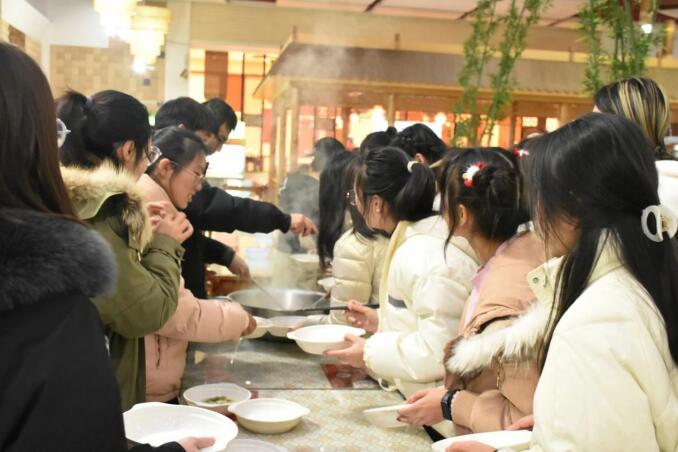 教育学院融媒体中心讯(通讯员 魏银莉)岁寒又冬至,团圆正当时。12月22日下午,由2023级本科生生活心理部门主办的“包团圆饺子,习传统文化,展来年期冀”活动在东二食堂二楼顺利举行。东二食堂部分工作人员、2023级本科生辅导员王诗薇、蔡亚男以及年级学生参与活动。本次活动分为喜气洋洋包饺子、热气腾腾吃饺子、其乐融融做游戏三个环节。