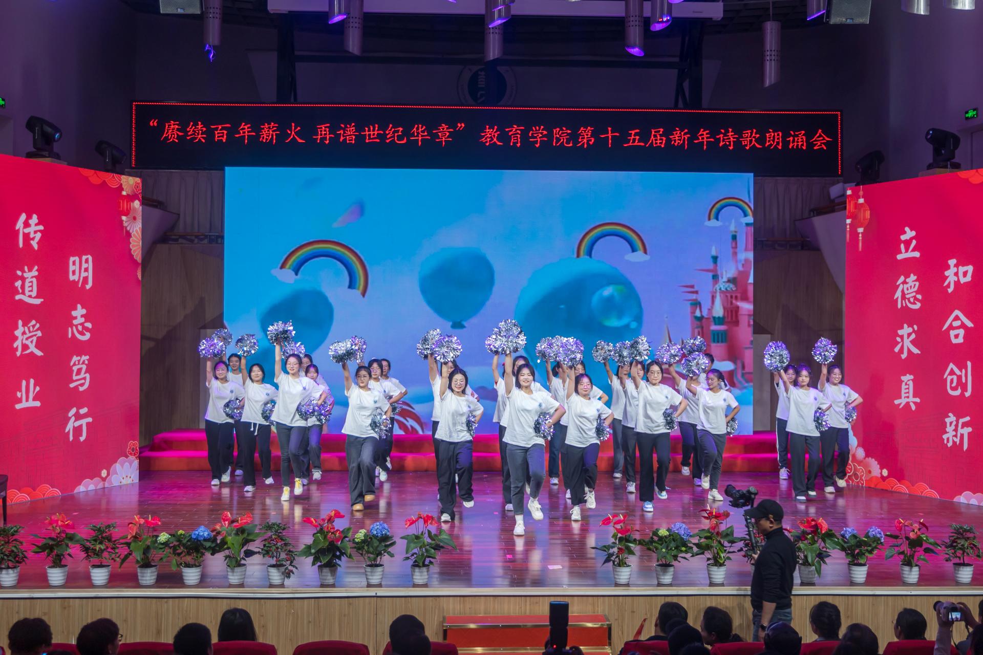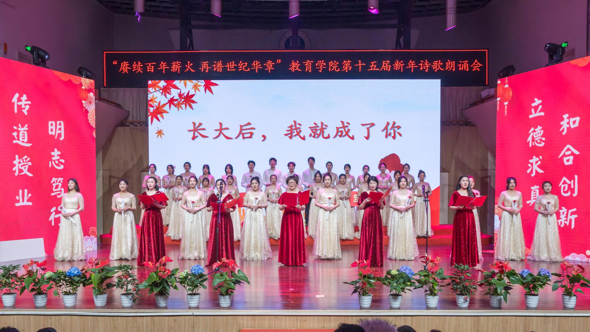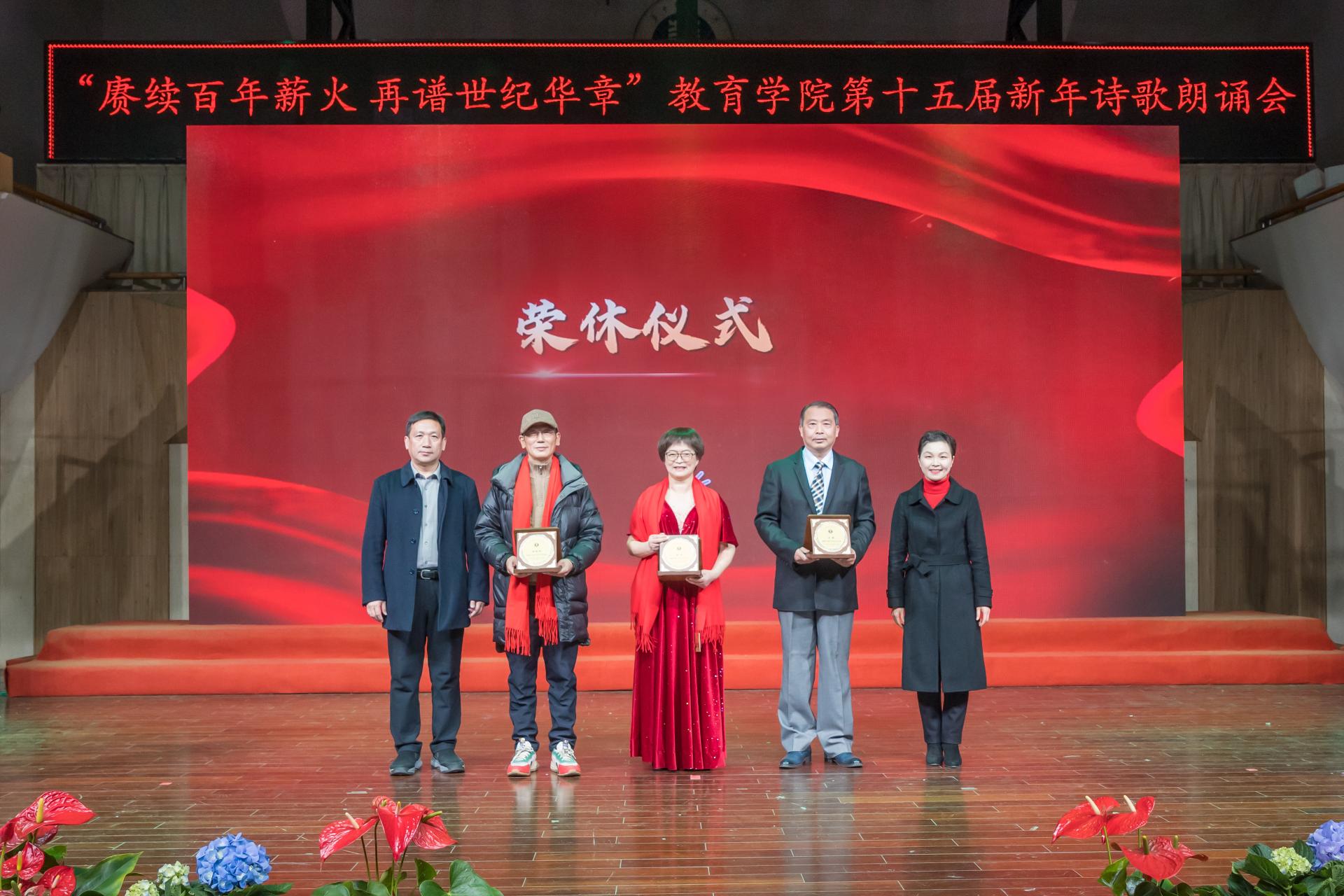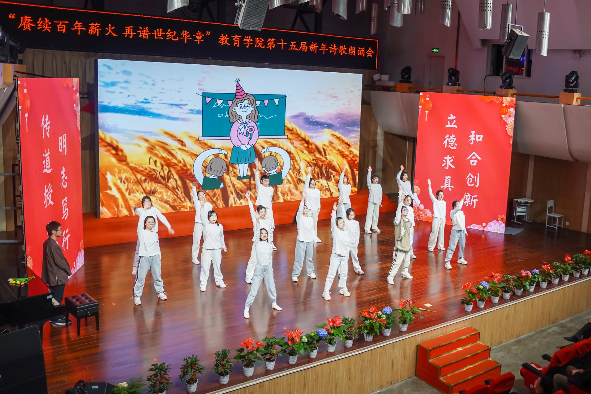 教育学院融媒体中心讯(通讯员 刘馨雨等)12月28日晚,教育学院第十五届“赓续百年薪火,再谱世纪华章”新年诗歌朗诵会在华中师范大学音乐厅隆重举行。学院党政班子、党委委员、各系所教师代表、离退休教师代表、院友代表及本研学生近400人参与活动。