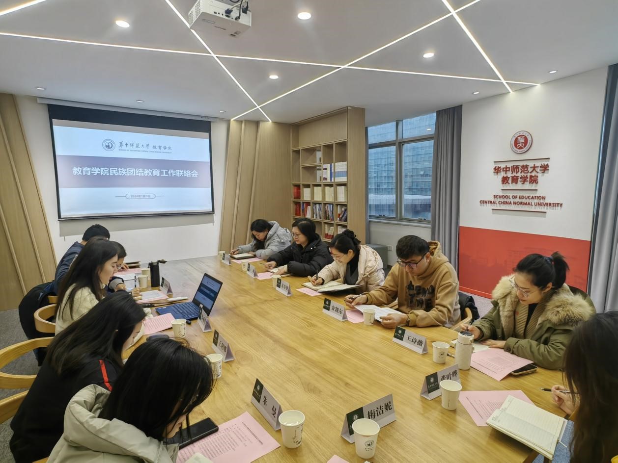 教育学院融媒体中心讯(通讯员 张叶晔 蔡亚男)1月3日上午,教育学院民族团结教育工作联络会在田家炳教育书院415室举行,教育学院党委副书记苏春艳、王璐,校党委学生工作部民族团结教育办公室少数民族学生辅导员安凯尔,教育学院全体专兼职辅导员参会。会议由教育学院民族团结教育联络人蔡亚男主持。