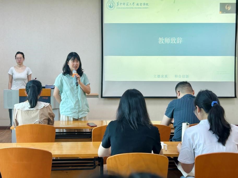 教育学院融媒体中心讯(通讯员 李海燕 王佳熠)为增强班级凝聚力、更好迎接大四生活,教育学院融合教育专业2103班于7月7日在田家炳楼J502教室举办了主题班会活动。教育学院院长雷江华、2103班班主任姚林群、特殊教育专业及融合教育专业教师代表、2021级融合教育专业全体本科生以线上线下相结合的方式参会。会议由2103班团支书张子诺主持。
