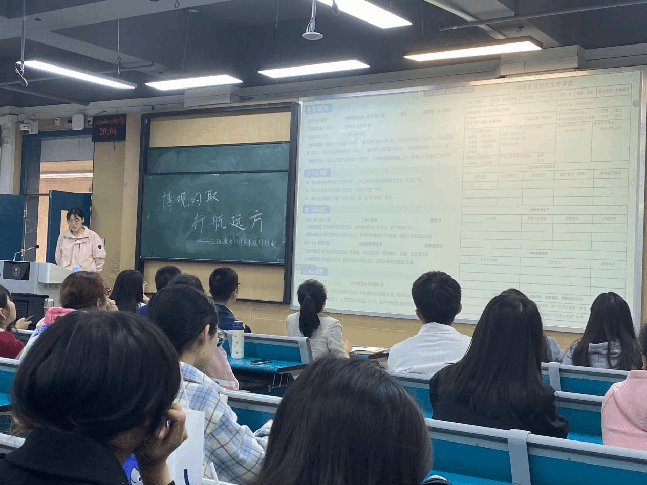 会上,2021级教育学专业学生杨京详尽介绍了保研的时间线、流程、名额、资格条件、注意事项等,并结合自身的经历,建议大家多多尝试,主动争取。