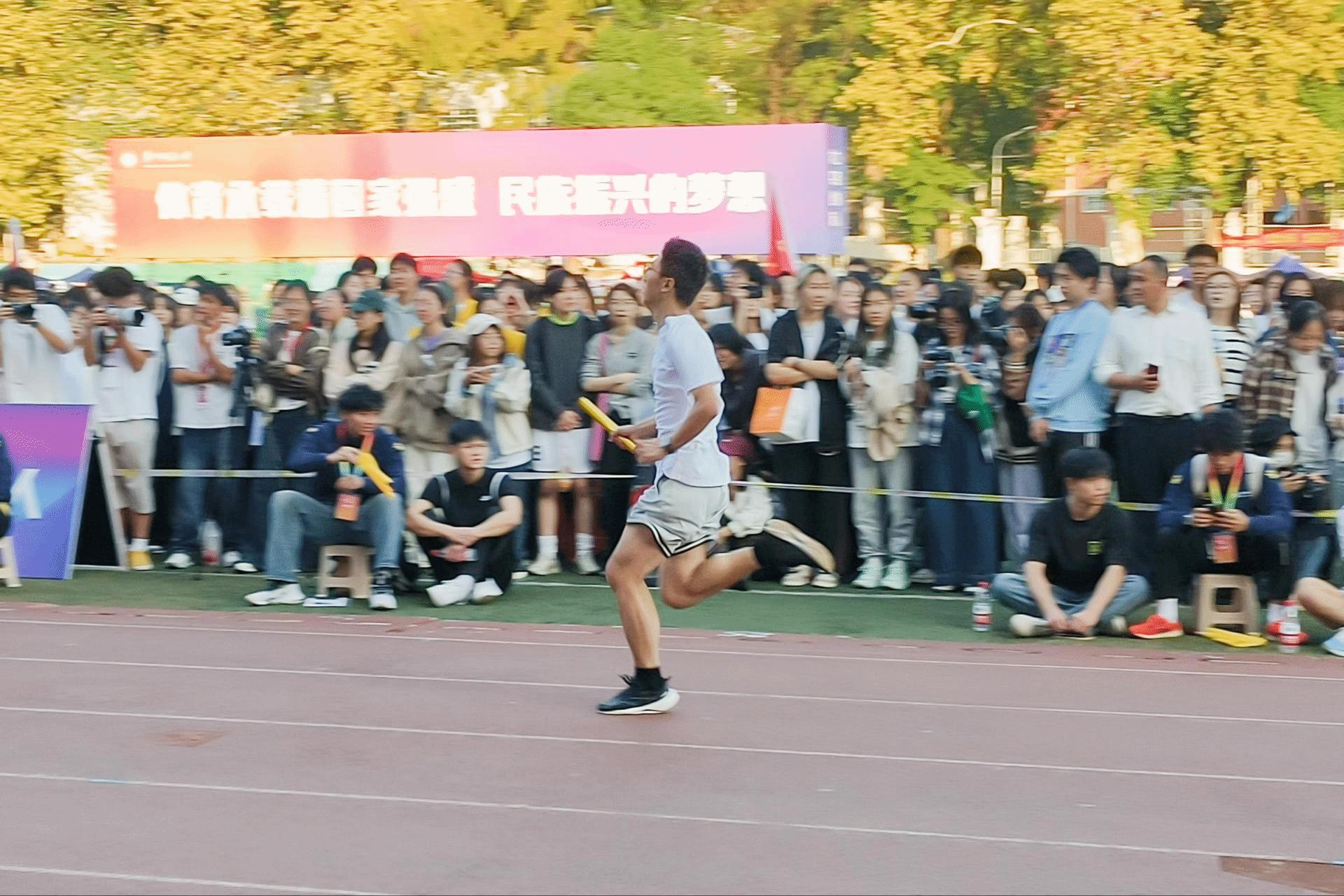 然而,比赛总是充满变数,比赛进行中我院队伍因一次失误导致节奏减缓,逐渐与其他队伍拉开差距。面对这一不利局面,运动员们并未气馁,他们迅速调整状态,以更加坚定的意志和默契的配合,展开了激烈的追逐。每一棒的交接都凝聚着团队的力量,每一次冲刺都饱含着对胜利的渴望。