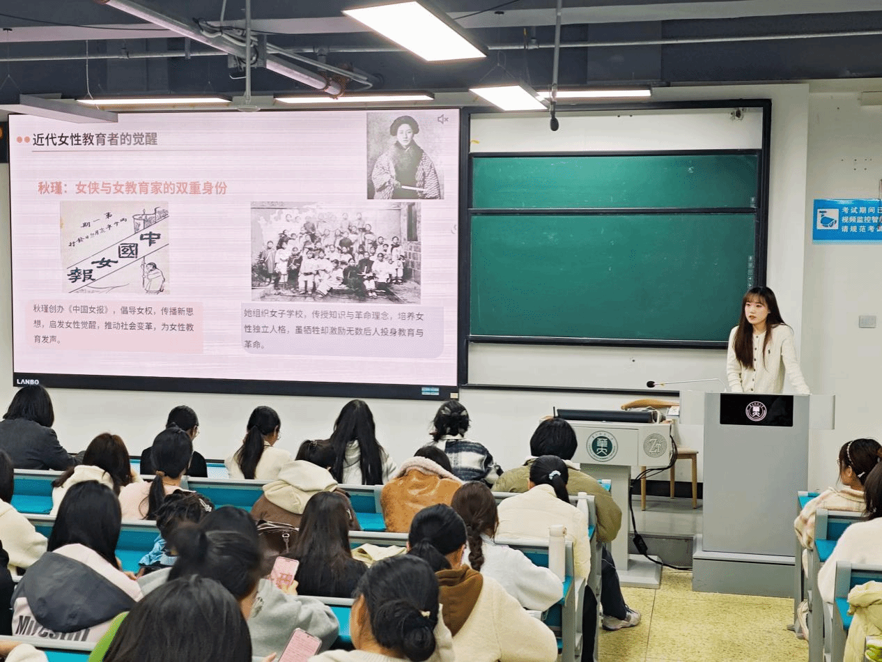分享会上,辅导员张晓瑜深情讲述了数位杰出女性教育者的动人事迹。从古代续写《汉书》、办私塾,为古代女性点亮知识烛火的班昭,到近代以笔为戈、创报办学的秋瑾,以及在建筑与文学领域留下传世佳话的林徽因,再到当代教育领域涌现的“燃灯校长”张桂梅,以爱为桥、跨越交流鸿沟的特殊教育老师董艳梅,深耕小学教育领域,聚焦情感教育的吴蓉瑾,这些杰出女性虽身处不同时代,耕耘于各异的教育天地,但她们的心灵紧紧相连,怀揣着同一个炽热梦想——倾尽心力为教育事业添砖加瓦。值此“三八”妇女节到来之际,回顾她们的奋斗历程,更如奏响一曲激昂的巾帼赞歌,激励着每一位教院学子以她们为榜样,接过教育传承的接力棒,续写教育事业的辉煌篇章。