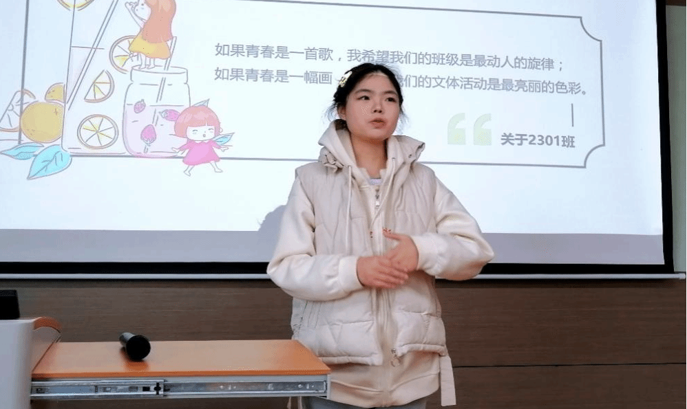 随后,班会进入文体委员补选环节。候选人白书羽、姜颖欣、吕丹丹依次上台竞选、各展所长,经2301班全体成员选举,白书羽当选为2301班文体委员。