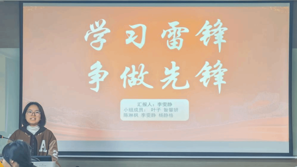 在主题团课活动阶段,团支书许莹莹致开幕词,她着重介绍了本期团员思想建设和实践教育的工作重点。随后,支部团员李雯静以“学习雷锋,争做先锋”为题,聚焦“雷锋精神的时代内涵与当代价值”,深情讲述了雷锋同志的感人事迹,阐明了雷锋精神的时代内涵。