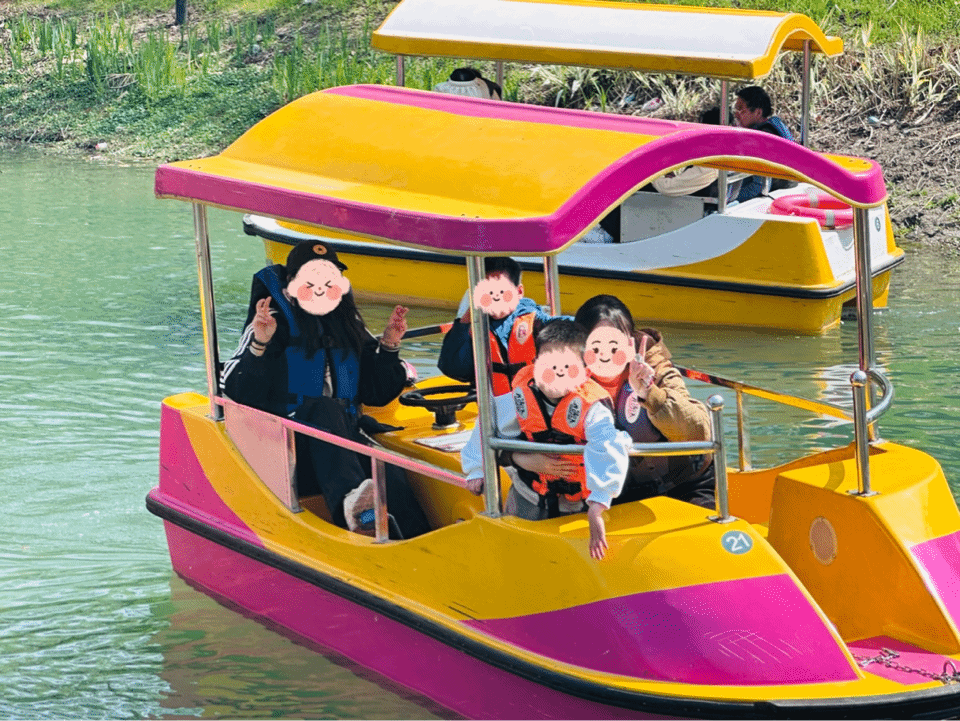 上午9 点30分,志愿者与孩子们在解放公园集合。首项“泛舟游园”环节中,志愿者们化身“水上导师”,引导星宝观察湖面生态,传递环保理念。星宝们与志愿者协作划船,湖面上一片欢声笑语。