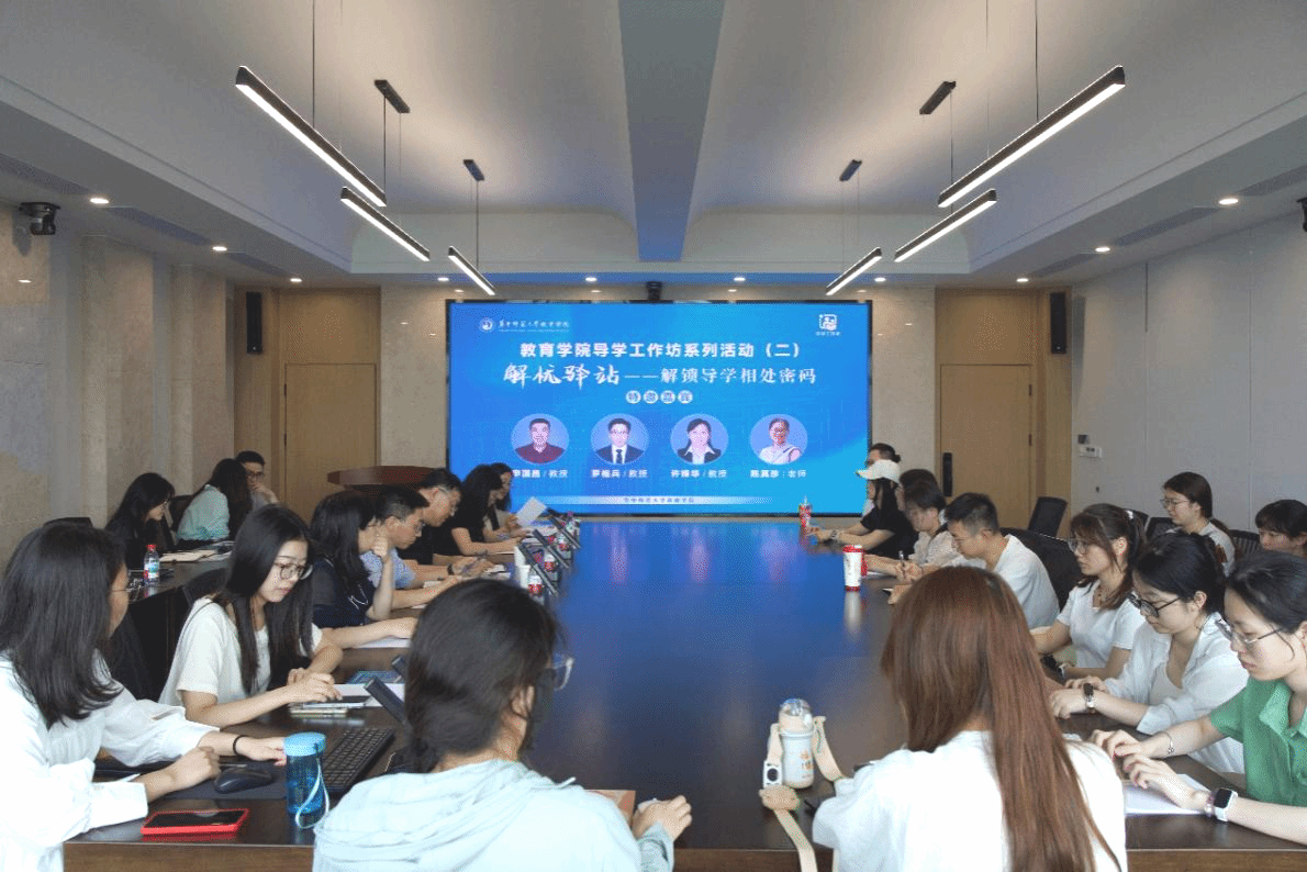 教育学院融媒体中心讯(通讯员 吴宇琳 董洁) 5月16日下午,教育学院“导学工作坊”之“解忧驿站——解锁导学相处密码”活动在田家炳教育书院901室圆满举行。学院研究生导师代表申国昌、罗祖兵、许锋华和学校心理健康教育中心专职教师陈真珍与30余名博士、硕士研究生代表聚焦导学相处中的角色定位、沟通效能及压力调适等开展深度互动交流。活动由学院党委副书记苏春艳主持。