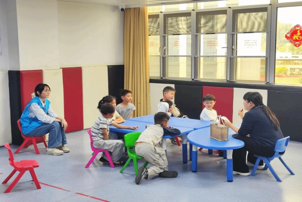 上午,在康复治疗师的指导下,志愿者们分成不同小组,协助特殊儿童进行注意力保持训练。通过数字接龙、搭积木等趣味游戏,志愿者们运用专业技巧帮助孩子们提升专注力。志愿者们还以“影子老师”的身份深入课堂,为孩子们提供一对一陪伴。他们不仅协助治疗师维持课堂秩序,还通过观察记录每个孩子的行为特点和学习状态,及时给予鼓励和辅助,确保儿童能够有效参与课堂活动。
