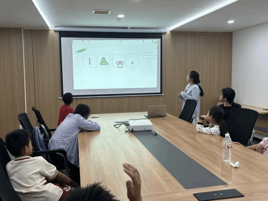 志愿者张泽佳运用多媒体课件与实物道具,向孩子们生动解析端午节的起源、文化内涵及各地独特的风俗习惯。课堂设置多项趣味互动环节,孩子们通过角色扮演重现屈原故事,在问答竞赛中掌握艾草、雄黄等节庆元素的文化密码,现场气氛热烈,孩子们在寓教于乐中深化了对传统节日的认知。
