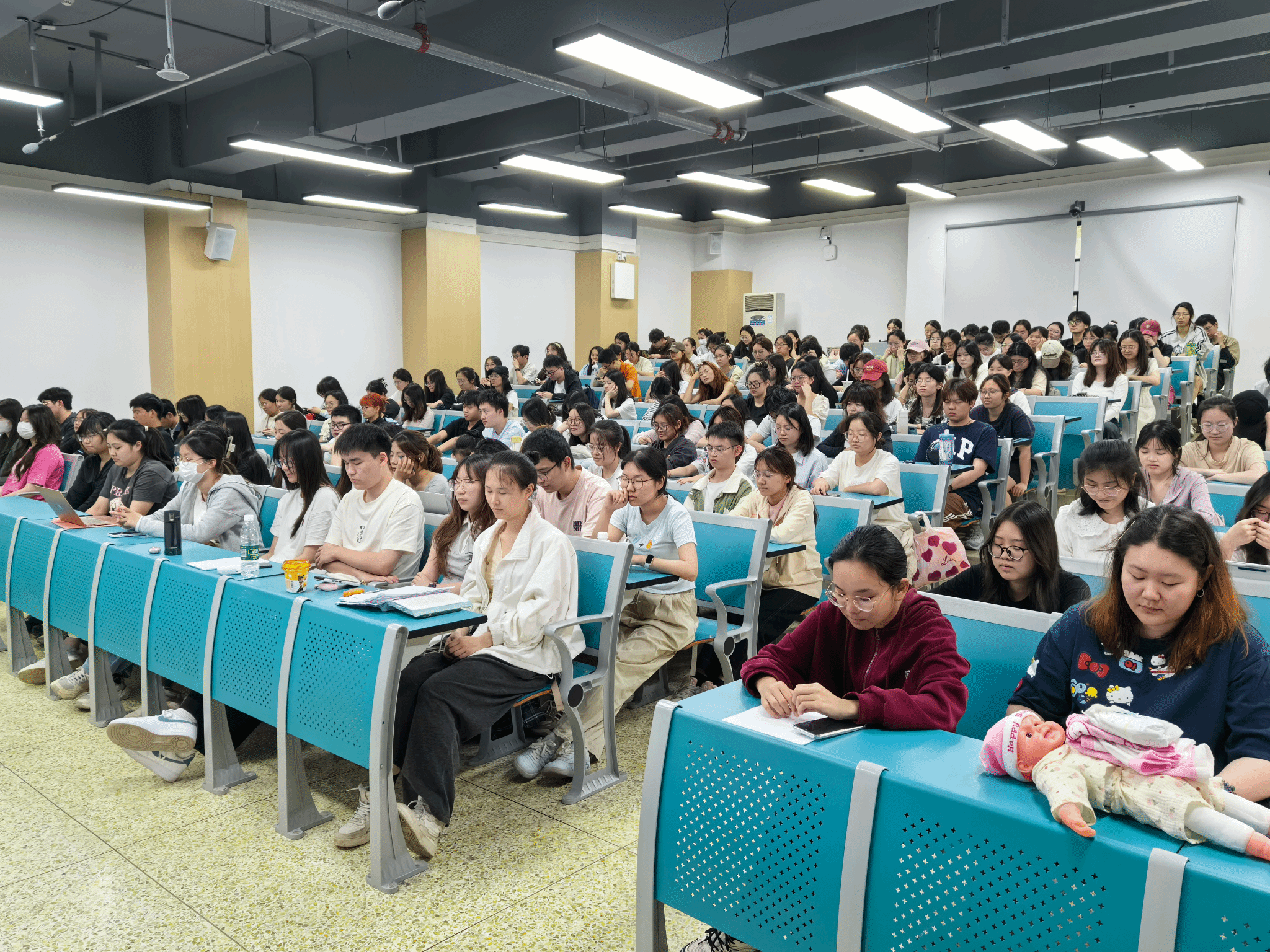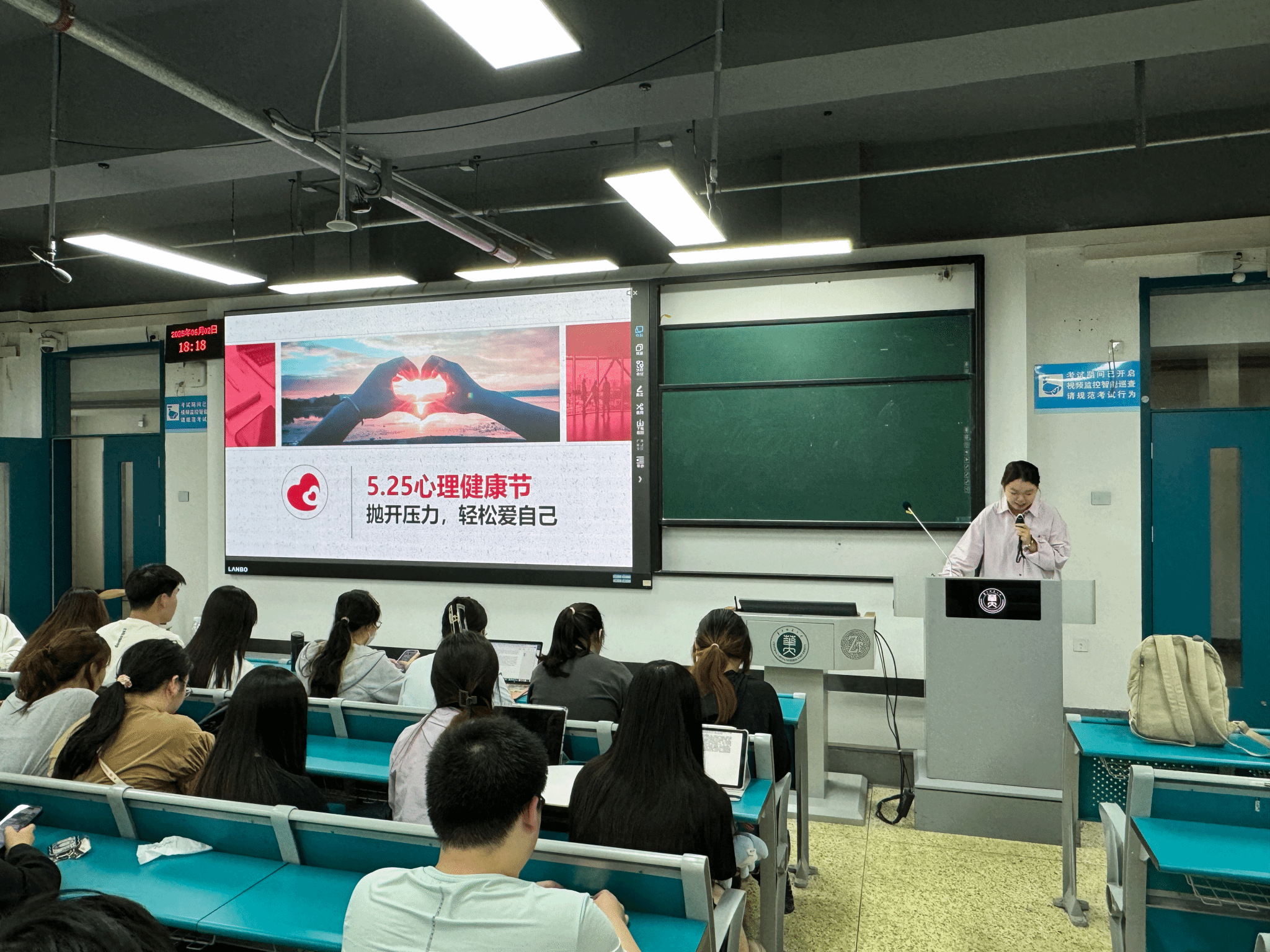 张竞帆以 “抛开压力,轻松爱自己” 为主题,通过 “情绪传染小测试” 揭示情绪传递性,引导同学们关注积极信息对心态的调节作用。同时,她引入 “心理能量电池” 概念,对比健康与不健康的心理状态维护方式,强调心理健康是应对压力、实现自我成长的能力,而非单纯没有负面情绪。针对大学生常见的学业焦虑、宿舍矛盾、拖延等压力源,她结合大脑杏仁核与前额叶的生理机制,解释压力下情绪化反应的成因。在解压实践部分,她设计了 “夸夸接龙” 互动游戏、冥想练习及 “525 爱自己 7 天行动” 打卡挑战,倡导通过微小积极行动积累心理能量,同时建议长期压力困扰者借助规律作息、朋辈互助或心理咨询寻求支持。