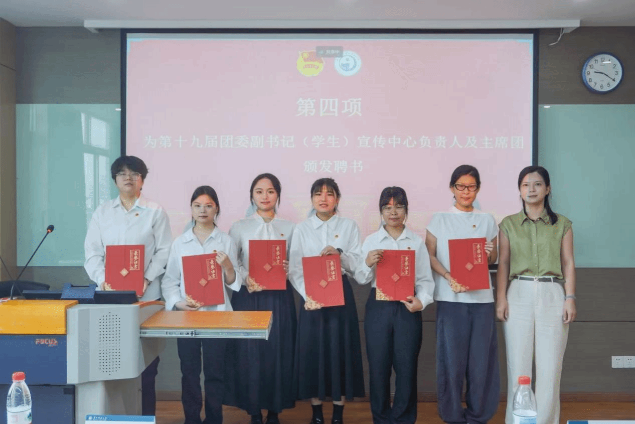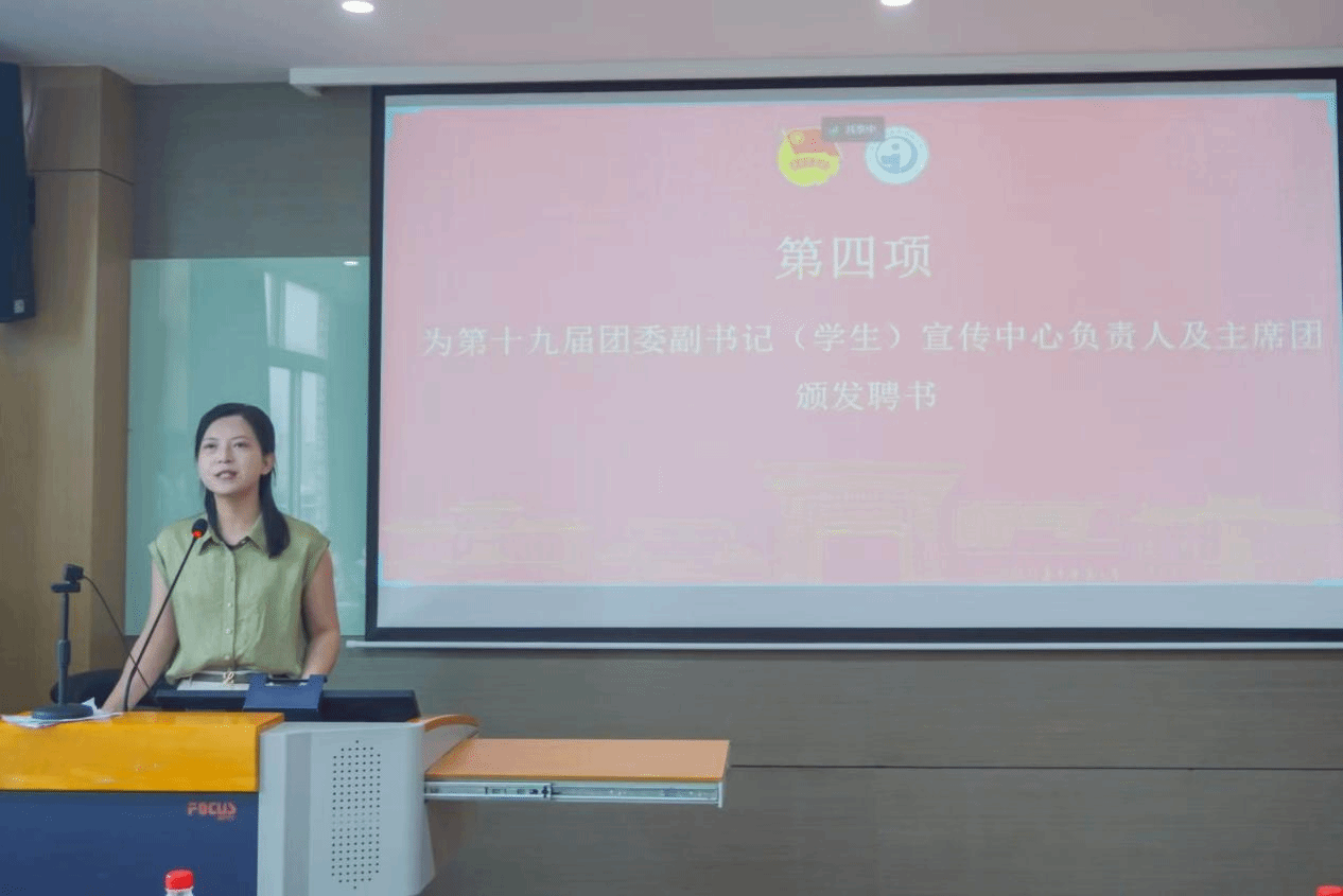 大会在国歌中拉开序幕。校学生会主席负责人冯卓致辞。她从思想引领、服务同学、促进专业发展三个方面,充分肯定了过去一年学生会的工作,并从校院两级学生工作协同发展的重要性提出了建议。学生会主席团成员孙佳欣向大会做第十九届届学生会工作报告。报告系统梳理了过去一年的工作情况,学生会聚焦主责主业,深化改革创新,服务青年成长,焕发时代新气象。工作报告得到了参会代表的充分认可。王璐副书记为第十九届团委副书记、宣传中心负责人及主席团成员颁发聘书。