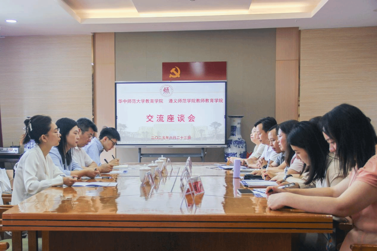 教育学院融媒体中心讯(通讯员 姚俊伊 勾良爽 叶瑞哲 邓渝欣)为引导青年学子在社会大课堂回答“真问题”,上好“行走的思政课”和“一线的专业课”,深入贯彻落实师范教育协同提质计划,加强师范院校间交流与合作,6月23日上午,华中师范大学教育学院与遵义师范学院教师教育学院师生举行交流座谈暨暑期社会实践动员会。遵义师范学院教师教育学院党委书记王洪叶,党委副书记李章琼、副院长周云、胡云聪,华中师范教育学院副院长郑刚,党委副书记王璐出席,双方暑期实践队指导老师及全体队员参与。会议由遵义师范学院教师教育学院党委书记王洪叶主持。