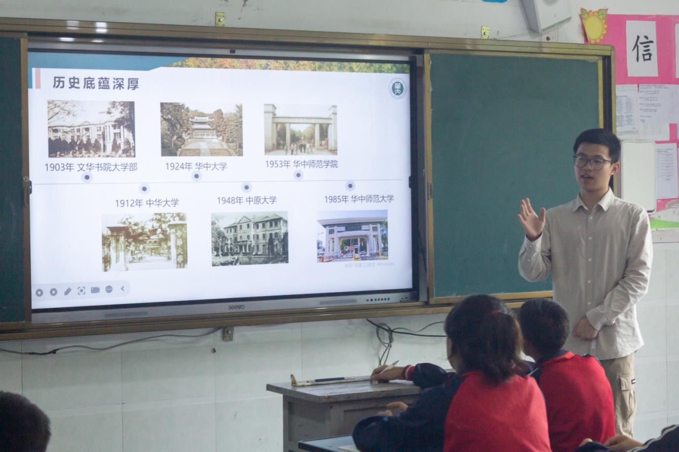 队员滕宇骥以华中师范大学校门图片为引,讲述了学校从文华书院至今的发展历程,阐释“忠诚博雅、朴实刚毅”的校训精神。勾良爽则通过四季校园风光与古今建筑,展现大学生活的丰富多彩,并巧妙关联红军小学的红色故事与当地唢呐文化,深化了学生对文化传承的理解。