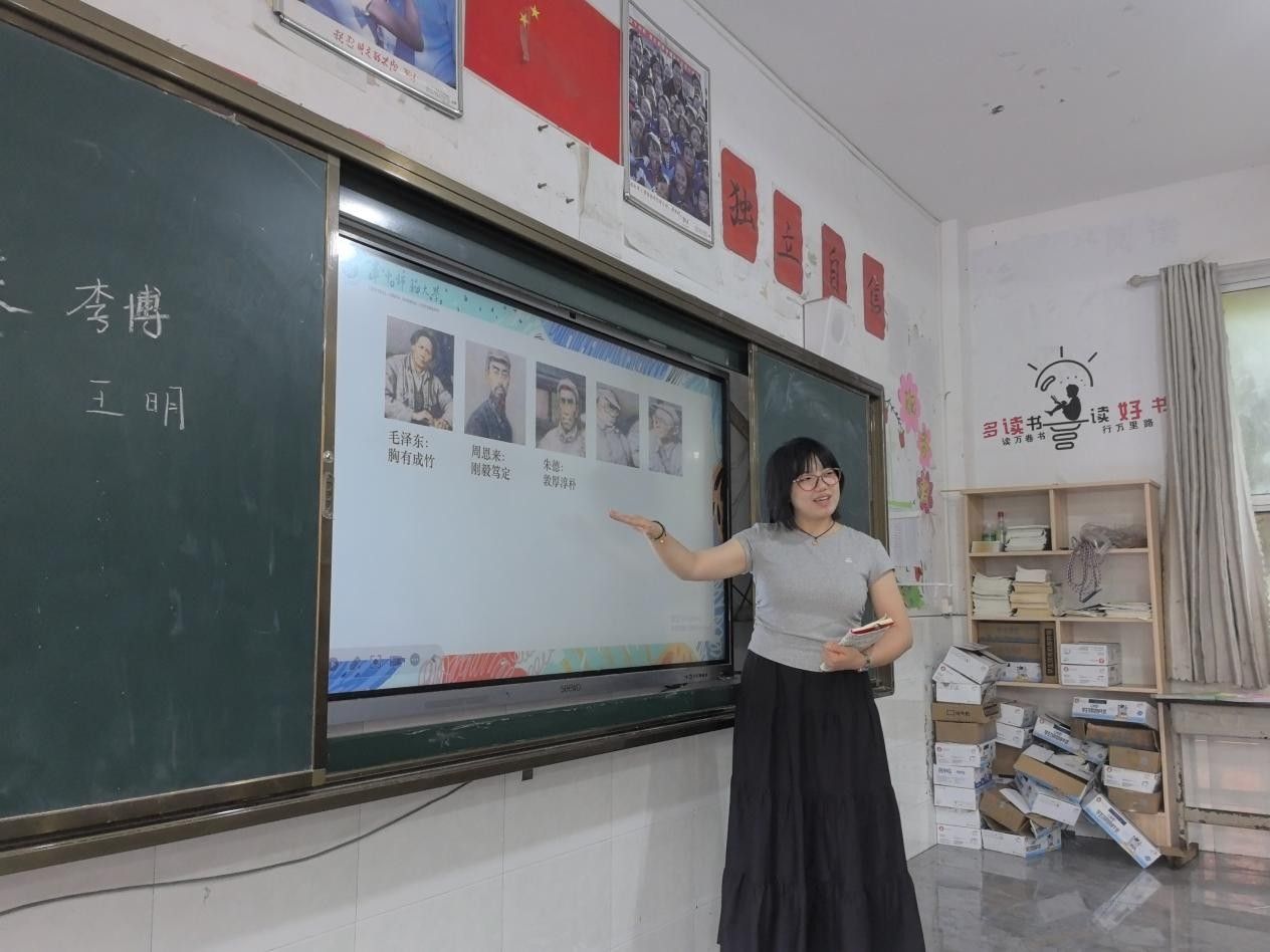 此外,队员们还开发出了红色经典油画鉴赏、红色诗歌创编等系列红色主题课程,将长征精神与地方革命故事融入教学,既拓展了学生的综合素质,又厚植了红色革命精神。课堂上,孩子们专注的目光、热烈的掌声,以及课后围绕队员提问的身影,无不彰显红色教育的感染力。