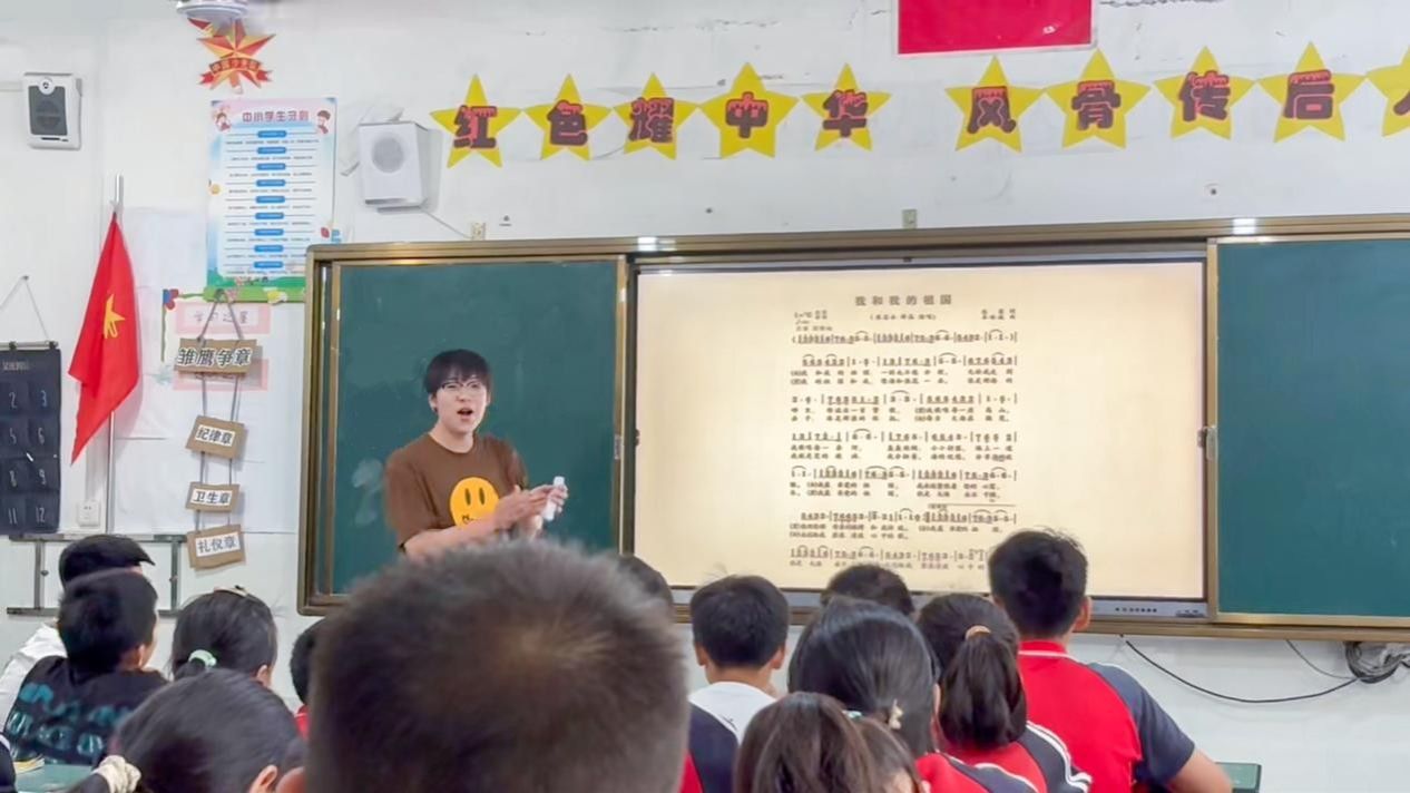 队员白书羽结合遵义红色文化,精心设计了一堂红歌鉴赏课。通过解析《我和我的祖国》的创作背景与歌词深意,引导孩子们理解“我”与“国”的血脉相连。课堂尾声,师生齐声合唱,嘹亮童声回荡校园,爱国情感在孩子们心中悄然扎根。