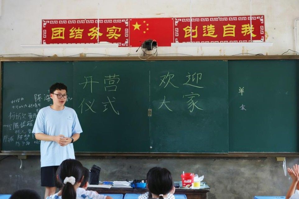 教育学院融媒体中心讯(通讯员 胡高瑞 杨茜文)7月7日上午,华中师范大学学生未来教育家协会绿芽实践队(以下简称绿芽实践队)暑期实践开营仪式在江西省九江市瑞昌市肇陈镇希望小学举行。共青团瑞昌市委书记周群、肇陈镇人民政府团委干事朱必经、希望小学校长刘宝珠出 席,绿芽实践队全体队员与希望小学学生参加。仪式由绿芽实践队队长吉天昊主持。