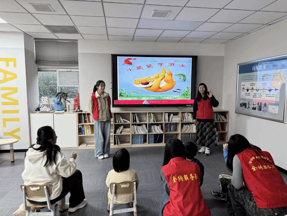 教育学院融媒体中心讯(通讯员 曾雯琳 郁埸)2025年10月25日,全纳服务队在田家炳教育书院融合教育辅助技术支持中心成功举办第26期“梦想、自信与成长”绘本讲读活动。本次活动以《小袋袋学游泳》为讲读绘本,韩晨老师在试讲阶段给出了专业指导,志愿者刘沫妍、蒋函冰负责现场讲读,4名小朋友参与其中。