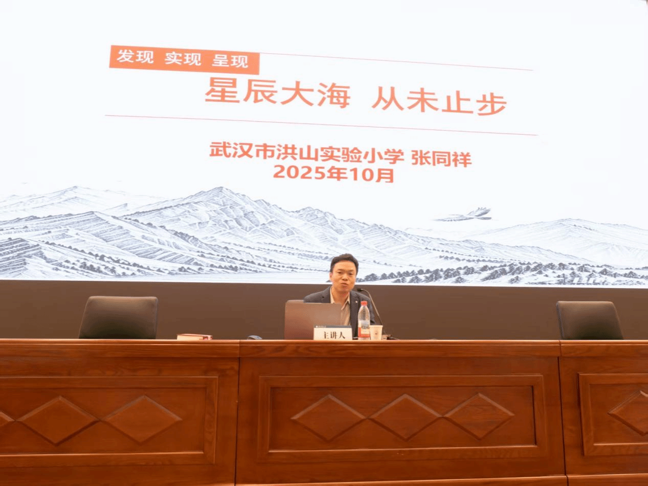 教育学院融媒体中心讯(通讯员 黄怡菲 徐思雨 勾良爽 李讷 叶瑞哲)10月29日,由华中师范大学就业工作处主办,教育学院承办的“职引未来 筑梦青春——一线名师面对面”第六期主题讲座在大学生活动中心B栋四楼报告厅举行。湖北省特级教师、武汉市洪山实验小学校长张同祥以“发现 实现 呈现—成长的裂变”为主题作报告,并与在场学生进行了深入交流。学校就业工作处生涯教育主管卢雯、教育学院党委副书记王璐、各年级辅导员代表以及本研学生代表两百余人共同参与,活动由2024级本科生辅导员彭雨茜主持。